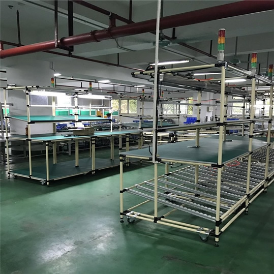 3、精益管工作台流水线应变能力大,生产设备的协调性非常强,系统版面布置非常合理,增减设备也很方便,可以满足市场非常大的需求。